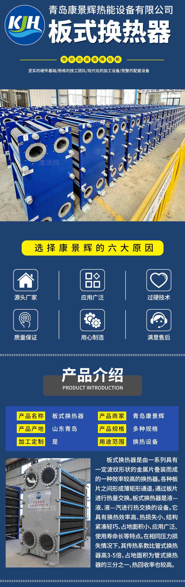 青島康景輝熱能設(shè)備有限公司,位于青島膠州市膠北國際工業(yè)園科創(chuàng)路西首,注冊資金5000萬元,占地40畝,是一家集設(shè)計、研發(fā)、生產(chǎn)、安裝、售后于一體的換熱設(shè)備生產(chǎn)廠家。 康景輝熱能設(shè)備主要產(chǎn)品包括:板式換熱器、管式換熱器、全焊接換熱器、可拆式全焊接板式換熱器、預(yù)熱器、冷凝器、煙氣換熱器、GGH煙氣換熱器、空氣預(yù)熱器、余熱回收設(shè)備等。康景輝換熱器廣泛應(yīng)用于石油、化工、冶金、醫(yī)藥、食品、供暖等行業(yè)。 康景輝板式換熱器,具有換熱效***、易清潔、易維護(hù)、耐腐蝕等特點。板片型號眾多,種類齊全,口徑覆蓋25-500MM,滿足不同客戶對不同型號換熱器的需求。 康景輝熱能設(shè)備擁有獨立生產(chǎn)加工工廠,配套生產(chǎn)加工設(shè)備有:2000t壓力機(jī)、8000t壓力機(jī)、20000t壓力機(jī)、徐鍛開式高性能固定臺沖床、自動縫焊機(jī)、卷板機(jī)、激光下料機(jī)、自動焊機(jī)等。 康景輝熱能設(shè)備有自主研發(fā)團(tuán)隊,擁有多項認(rèn)證和發(fā)明***,并榮獲多項證書。